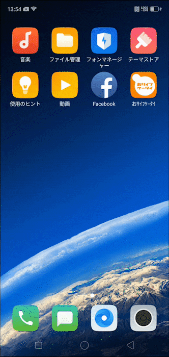 画面の下部中央からスワイプ