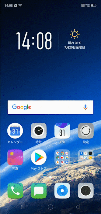 画面上部から下にスワイプ